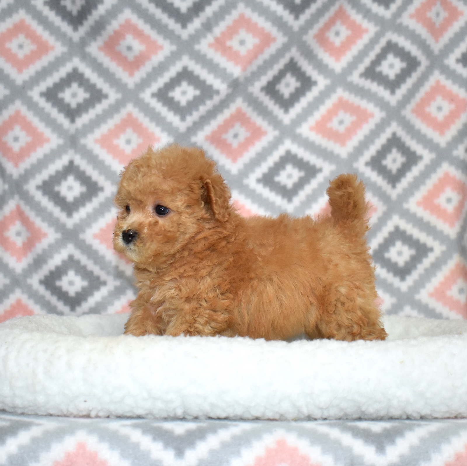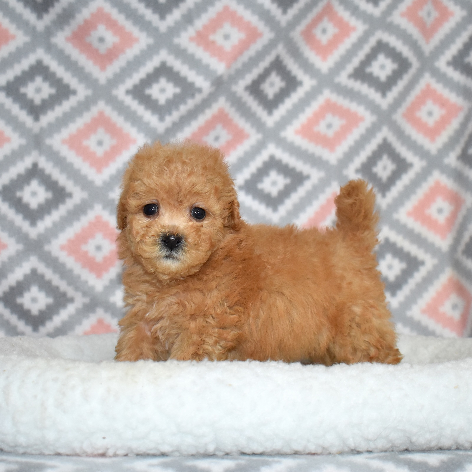 Her soft, wavy coat adds to her irresistible charm and is one of the many reasons Bich Poos are so adored. Peaches is intelligent, eager to please, and thrives on interaction, making her a wonderful companion for families or individuals.