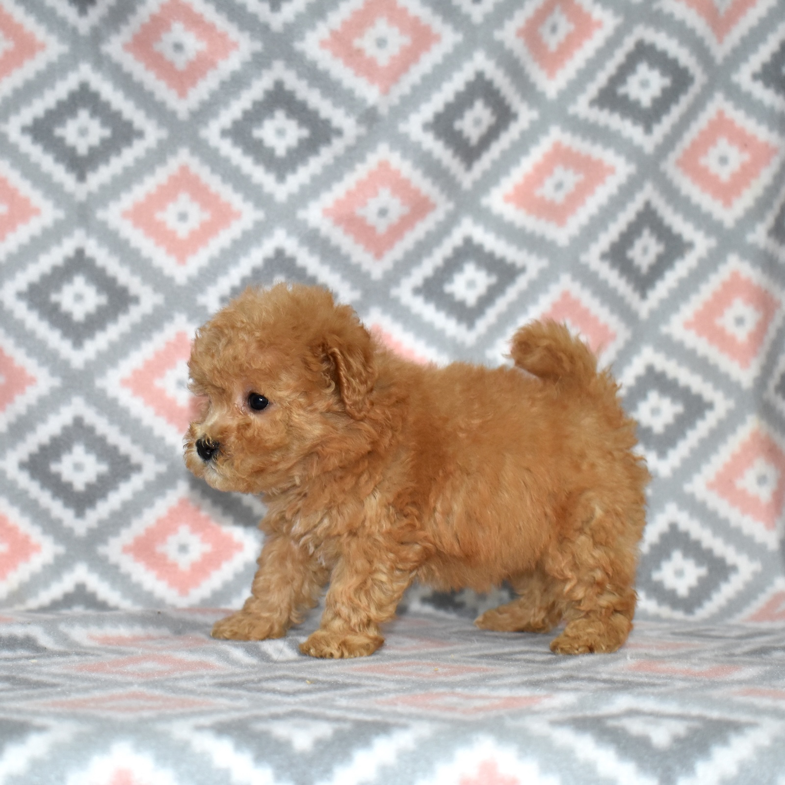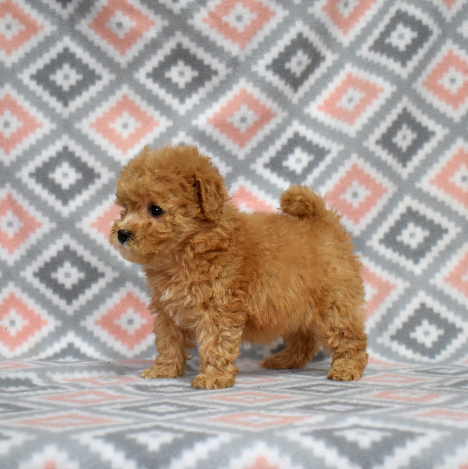 Peaches is a joyful Bich Poo puppy with a beautiful golden coat accented by adorable white markings. Her playful, silly personality makes her a constant source of smiles and laughter. Bich Poos are known for their happy, fun-loving nature, and Peaches truly embodies that spirit.