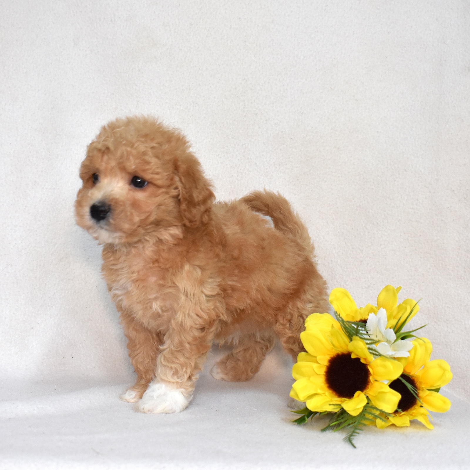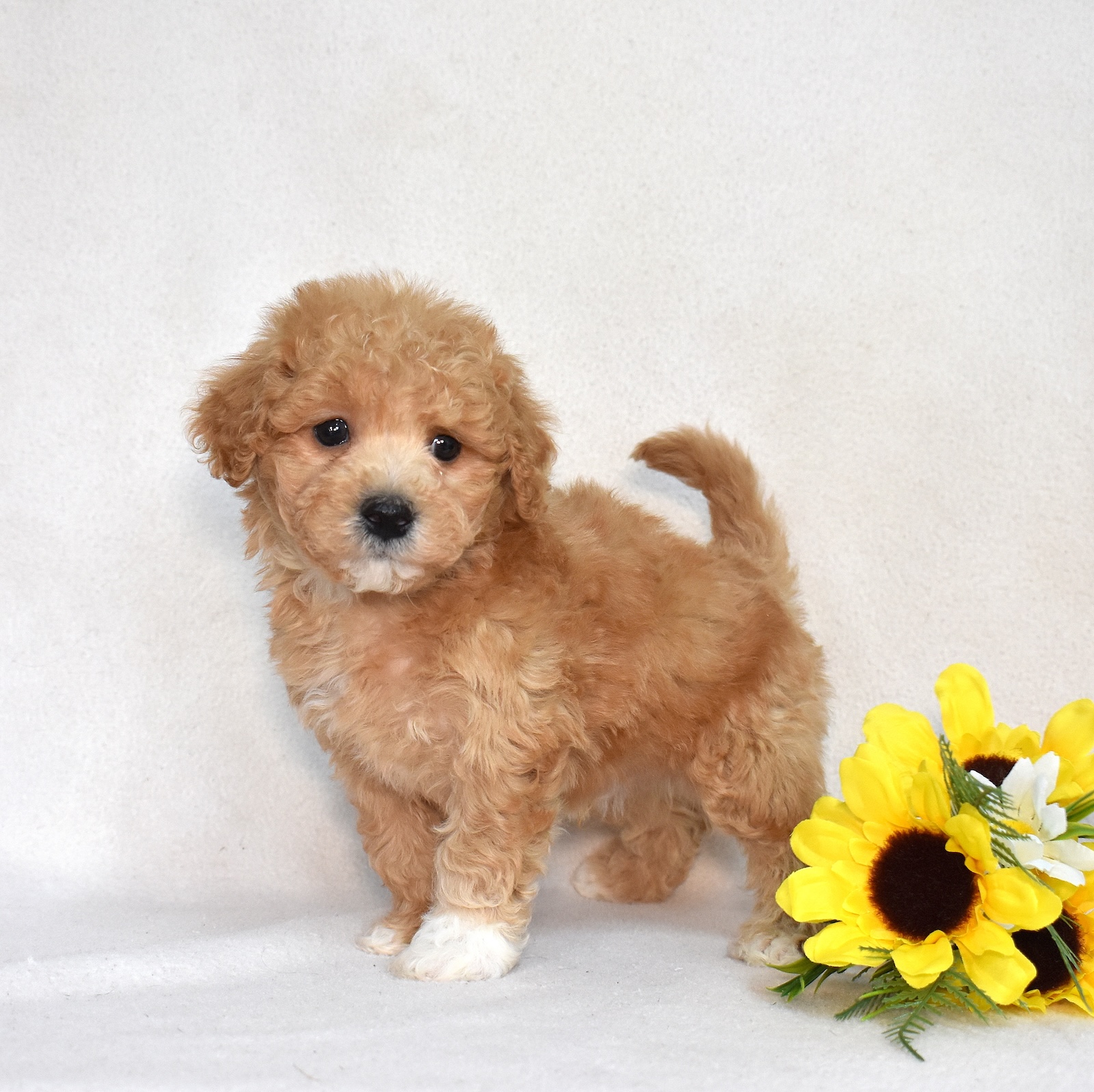 He loves interaction and thrives when he’s included in family life. Whether he’s chasing after a favorite toy or simply trotting alongside you, he brings enthusiasm to every activity. His golden coat gives him a warm, glowing look that matches his bright personality perfectly.