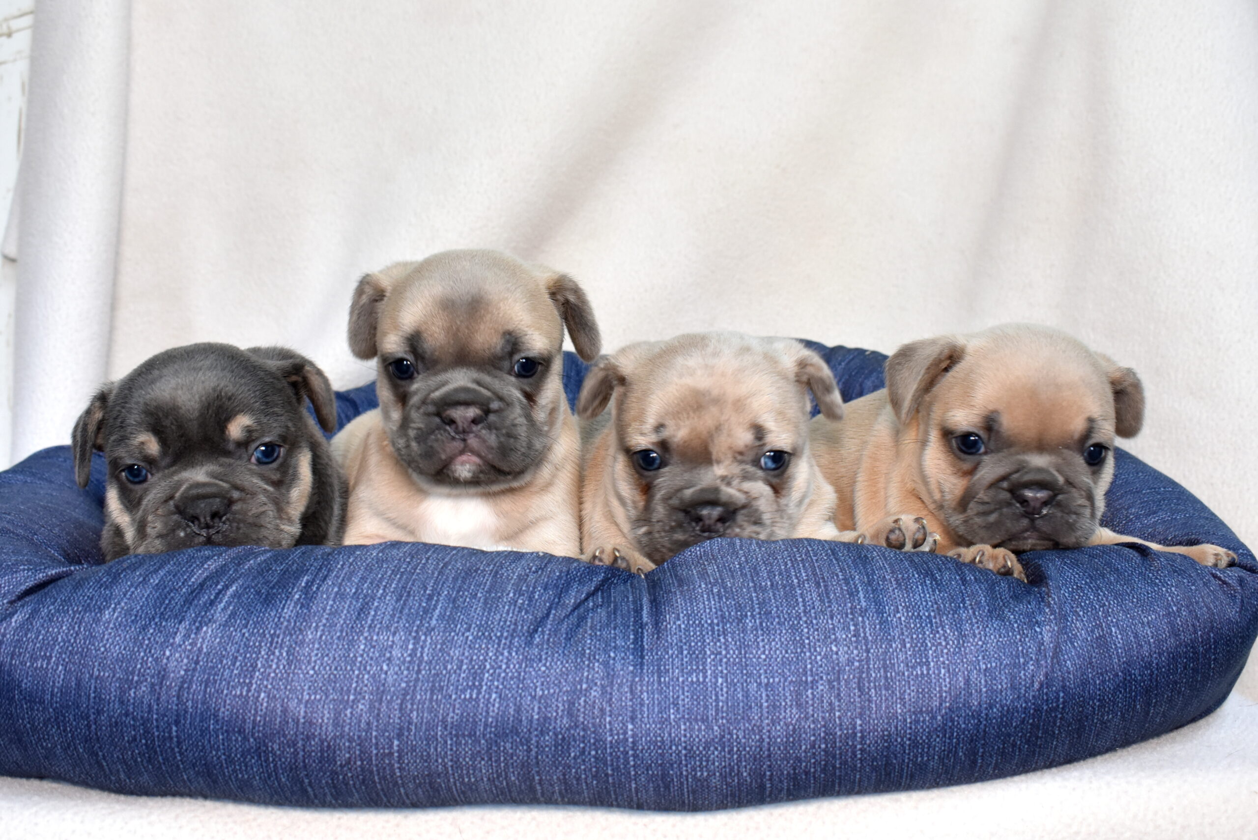 Frenchies come in a variety of beautiful coat colors, including fawn, cream, brindle, blue, chocolate, and lilac. Each puppy Frenchie dog has its own unique markings and expression that make them truly one-of-a-kind. While they don’t require heavy grooming like some breeds, Frenchies love the attention that comes with their care routine — and grooming becomes another opportunity to bond.