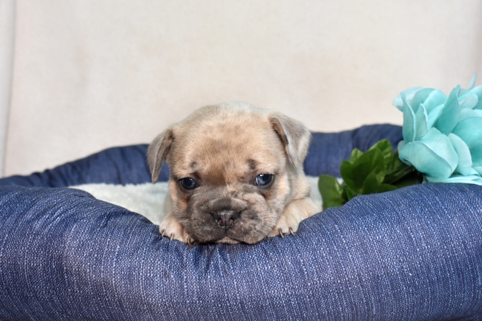 Frenchies come in a variety of beautiful coat colors, including fawn, cream, brindle, blue, chocolate, and lilac. Each puppy Frenchie dog has its own unique markings and expression that make them truly one-of-a-kind. While they don’t require heavy grooming like some breeds, Frenchies love the attention that comes with their care routine — and grooming becomes another opportunity to bond.